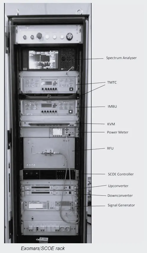 SCOE (Special Check-Out Equipment) is a rack with highly specialised electronic equipment for testing a satellite before it is launched. Our SCOEs are generally installed in cleanrooms where they test the satellite's solar panels, power management, RF system and payload. This is a very important step as it is the last point where potential problems can be fixed and repairs made to the satellite before launch.
